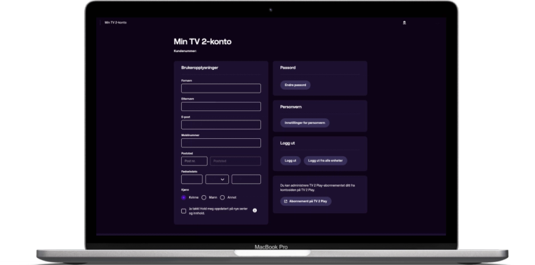 Din TV 2-konto er din personlige brukerkonto på tvers av TV 2 sine apper og tjenester.