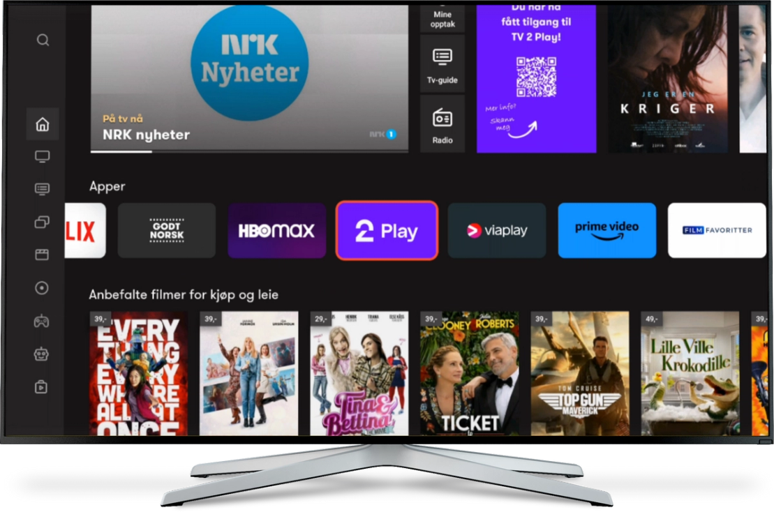 - Direktekanaler: TV 2 Direkte, TV 2 Nyheter, TV 2 Zebra og TV 2 Livsstil.
